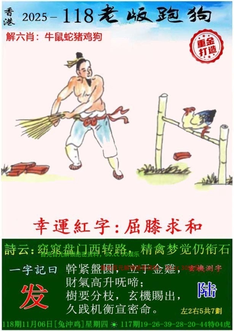 118期:金牌七肖【羊兔龙鼠马牛】开:猪31中